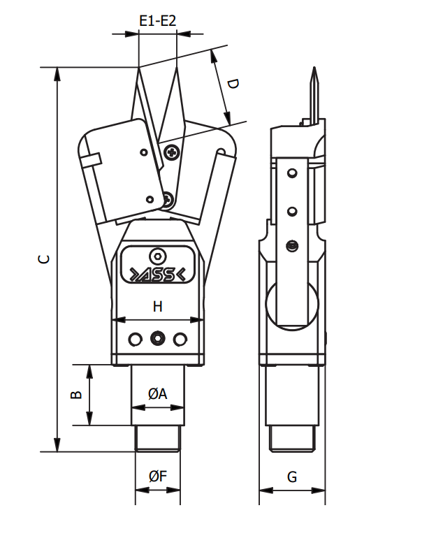 This scissor is a modified GRZ 20-20 Gripper with a set of scissor blades. It is “Single Acting / Spring Return” and features synchronized closing of the jaws. It is suitable for cutting thin materials like cardboard, foil or cloth. For available accessories please see below. A set of spare blades is included.