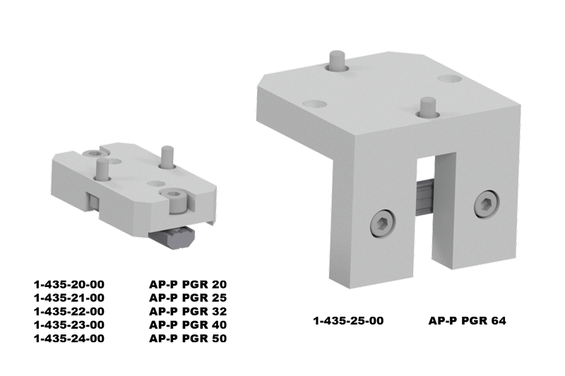 This adapter connects the PGRP parallel gripper to our X profile. The AP-P-PGR 64 connects our largest parallel gripper to JU profile. The gripper can be mounted parallel or vertical to the profile.