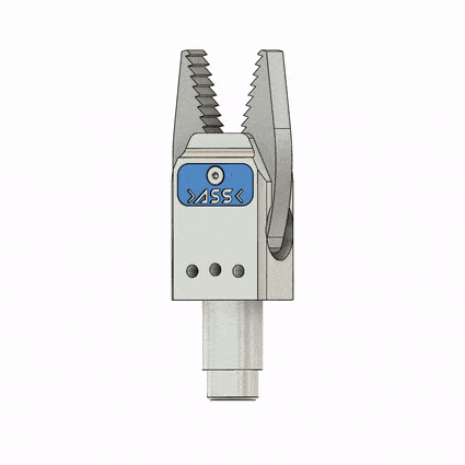 In order to overcome an unwanted side effect of grippers with a high closing force, is that especially hot and soft plastic materials have the tendency to stick at the open gripper jaws. In order to avoid this, ASS offers a sprue-push-off device.